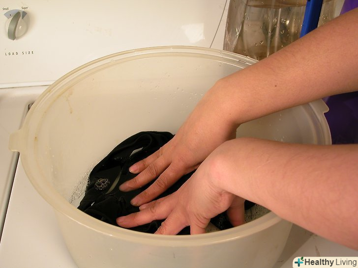 Періть вручну в холодній воді, з м'яким миючим засобом. підготуйте воду і миючий засіб відповідно до вказівок продукції. Холодна вода майже завжди краще. Використовуйте достатньо води, щоб повністю покрити леотард; чим більше води, тим краще.