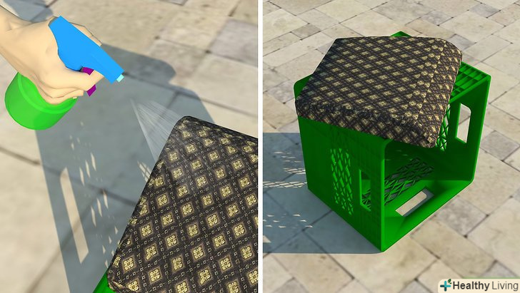 Обробіть сидіння від плям. встановіть кілька молочних ящиків або іншу опорну конструкцію на вулиці, і згідно з вказівками на упаковці, обробіть сидіння розпилювачем. Дайте їм висохнути протягом ночі в захищеному, але добре провітрюваному приміщенні. Якщо їх можна помістити в під'їзді або в гаражі, то це захистить вас від парів, а ваші блискучі нові сидіння від небезпечних хижих птахів.