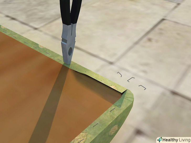 Обріжте надлишки тканини. Молотком забийте всі скріпки, які виступають.