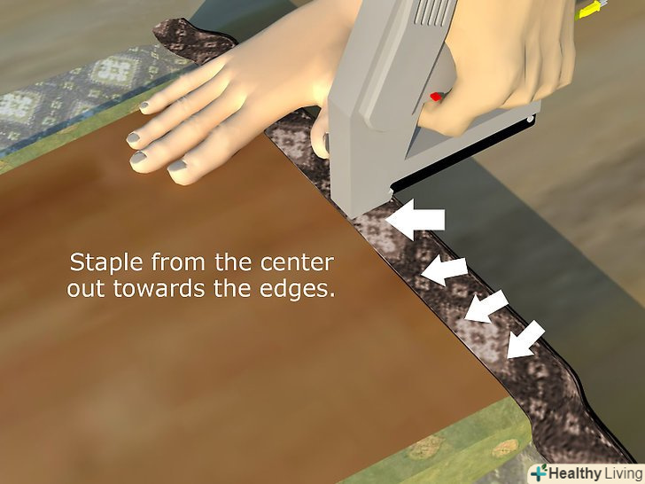 - Коли будете прибивати тканину степлером, подбайте, щоб отвори для гвинтів не перекривалися великою кількістю тканини або скобами. Ви зможете легко пройти через один шар тканини, але скоби будуть проблемою.