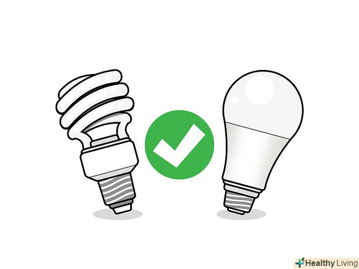 Змініть ваші лампочки. Ви дуже заощадите електроенергію, якщо замініть звичайні лампи розжарювання на нові енергозберігаючі або світлодіодні (LED) лампи. Тоді як звичайні лампи розжарювання дають світло за рахунок виділення тепла, Енергозберігаючі лампи краще зберігають електрику і мають довгий термін служби.- Енергозберігаючі лампи стали першою альтернативою лампам розжарювання, вони використовують близько чверті енергії, що витрачається лампами розжарювання. Вони містять достатню кількість ртуті, тому, якщо така лампочка перегорить, від неї потрібно позбутися належним чином.