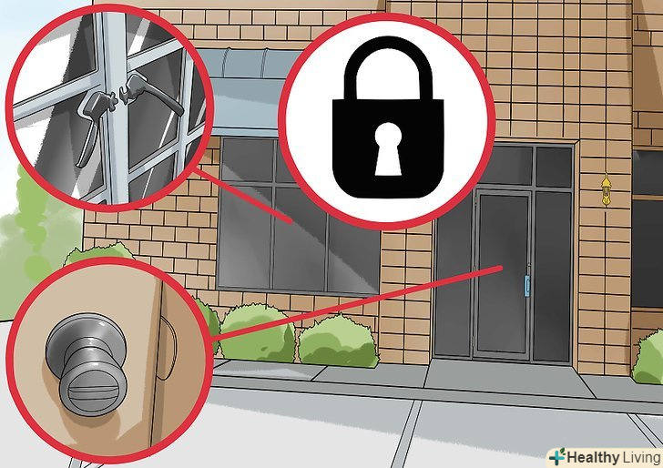 Закрийте на замки всі входи в будинок. Обов'язково використовуйте для дверей і вікон замки високої якості. Переконайтеся, що всі ваші вікна та двері закриті та замкнені. Встановіть замки на двері, на яких їх ще немає.- Закрийте жалюзі на вікнах. Крім додаткової міри безпеки, жалюзі будуть поряд з фіранками і шторами, берегти килими і тканини від вицвітання.