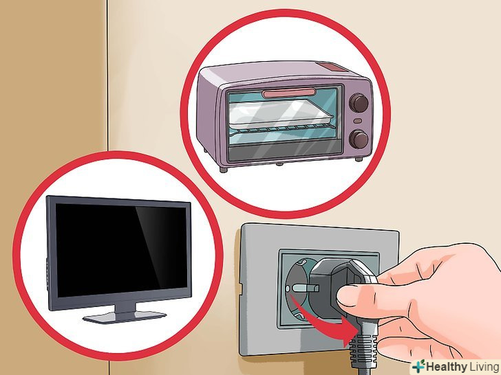 Вимкніть всі електроприлади. якщо ви не плануєте відключати електроенергію в усьому будинку, то від'єднайте електроприлади від мережі, в тому числі мікрохвильові печі і телевізори, щоб уникнути ризику виникнення пожежі в разі несправного вимикача або якщо гризуни пошкодять дроти.