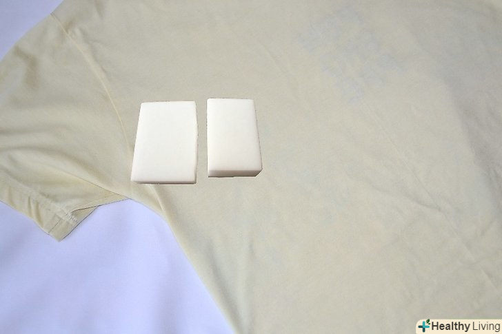 Ще одним способом позбутися від плям дезодоранту/антиперспіранту — скористатися "чарівним засобом для виведення плям" (з пінною губкою). Можете використовувати простий або фірмовий засіб для виведення плям (наприклад, Mr. Clean). Візьміть новий, чистий засіб для виведення плям і потріть їм пляму на одязі. Почніть зверху плями і видаляйте пляму, рухаючись до його низу. Можете додати трохи води, якщо пляма застаріла.