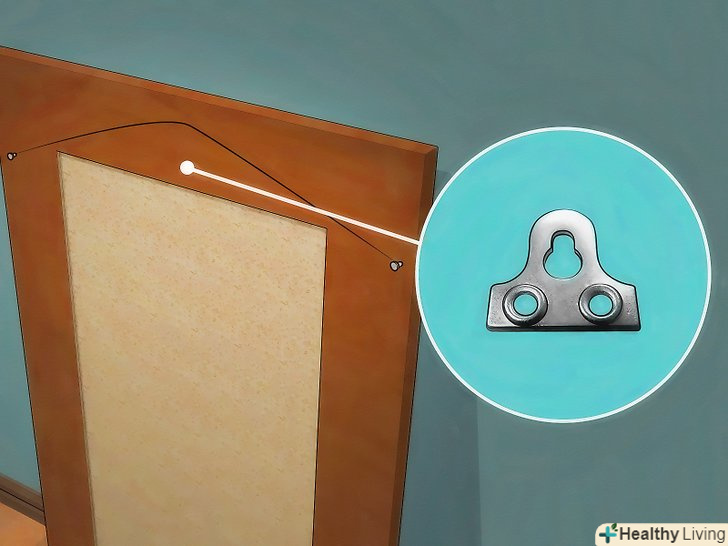 Підготуйте картину до монтажу. Якщо на вашій картині немає кронштейна, дротяної підвіски або інших кріпильних деталей, вам потрібно їх встановити. Краще використовувати кронштейни, так як вони будуть тримати картину надійніше, ніж дріт і мотузка, і не дадуть їй впасти при випадковому зіткненні. Прикріпіть кронштейн вище центру рамки на задній стороні так, щоб картина висіла рівно.