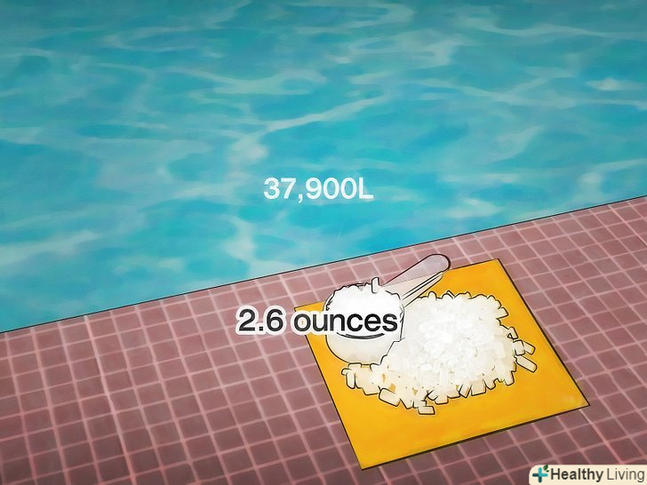 Розрахуйте, скільки хімікату вам знадобиться. завжди дотримуйтесь інструкцій на етикетці, щоб визначити, як і яку кількість речовини додавати в басейн. Багато хімічних речовин доступні в різних формах і концентраціях, так що загальне керівництво не здатне охопити всі можливі випадки.- Як правило, норма тіосульфату натрію становить приблизно 15 мл на 3800 літрів води. [17]