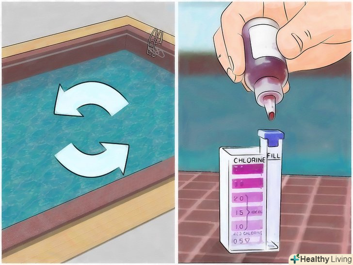 Візьміть пробу з басейну. Якщо ви цього ще не зробили, перевірте рівень хлору за допомогою спеціального набору з магазину приладдя для басейнів. [3] переконайтеся, що тестовий набір вимірює як вільний активний хлор, так і загальний вміст хлору. [4]- Як правило, вміст вільного хлору має бути в межах 1-3 проміле. [5] загальний вміст хлору не повинен бути більше активного більш ніж на 0,2 проміле. Ваш місцевий кодекс з питань охорони здоров'я та безпеки може мати інші вимоги. [6]