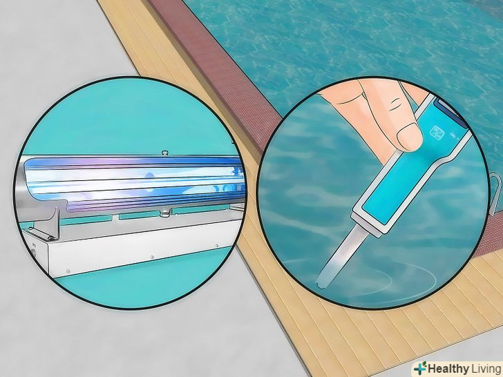 УФ дезінфекція. ультрафіолетові (УФ) лампи для басейнів можуть нейтралізувати більшість мікробів, але поодинці вони не зможуть підтримувати безпеку басейну. Проте, вони здатні скоротити кількість вільного хлору аж до 1 проміле, а іноді і того нижче. [20] [21] вони також можуть розкласти деякі дратівливі і шкідливі речовини, які з'являються в хлорованому басейні. І нарешті, хоча для цього їх використовують досить рідко, деякі типи ламп здатні розщеплювати високі рівні хлору.- Місцевий кодекс з питань охорони здоров'я та безпеки може мати різні вимоги щодо їх застосування.