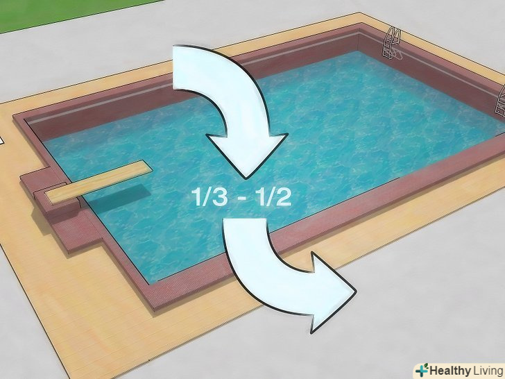 Замініть частину води в басейні. це дорогий і повільний метод, але з його допомогою ви зможете розбавити вміст хлору. Злийте і замініть в басейні десь 1/3-1/2 води. Після заміни води, на повернення в басейні нормального рівня хлору і рН може піти досить багато часу. [13]- Найшвидший спосіб (частково) злити воду в басейні – використання фільтра з опцією зворотного промивання.