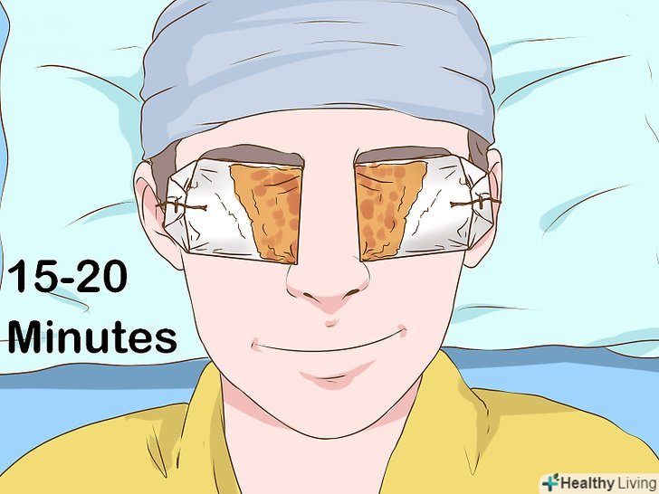 Заспокойте втомлені очі. кофеїн, що міститься в чаї, допомагає звужувати кровоносні судини навколо очей, роблячи темні кола менш помітними, в той час як Таннін сприяє поліпшенню кровообігу. Помістіть використані чайні пакетики в холодильник на 20 хвилин. Охолоджені чайні пакетики допоможуть зменшити набряки. Переконайтеся, що вони все ще вологі, але не мокрі, і прикладіть їх до очей на 15-20 хвилин. [11]