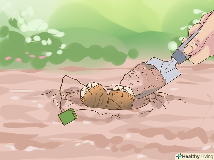 Доглядайте за садом. додавання чайних пакетиків в грунт принесе ряд корисних ефектів. Наприклад, це підвищить рівень азоту і кислотності грунту, приверне корисні бактерії, знизить рівень рН і надасть дощовим черв'якам корисну їжу. Можна також додати старі чайні пакетики в компостну яму, якщо тільки вони не зроблені з пластику. Крім того, спочатку необхідно витягти з них металеві скоби. [3]ПОРАДА ФАХІВЦЯ«перш ніж компостувати чайні пакетики, вивчіть упаковку, щоб переконатися, що вони не зроблені з пластику»
