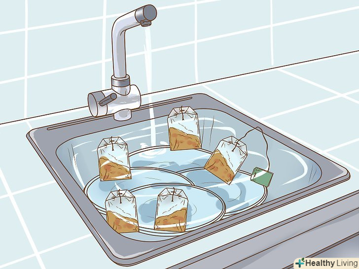 Знежирте посуд з трудноудаляемимі залишками їжі. активні сполуки, що знаходяться в чаї, є натуральною альтернативою агресивним хімічним речовинам, які зазвичай містяться в засобах для миття посуду з магазину. Щоб знежирити посуд, додайте старі чайні пакетики в раковину, наповнену теплою водою, залиште все відмокати на деякий час, а потім знову намагайтеся зішкребти залишки їжі. [5]