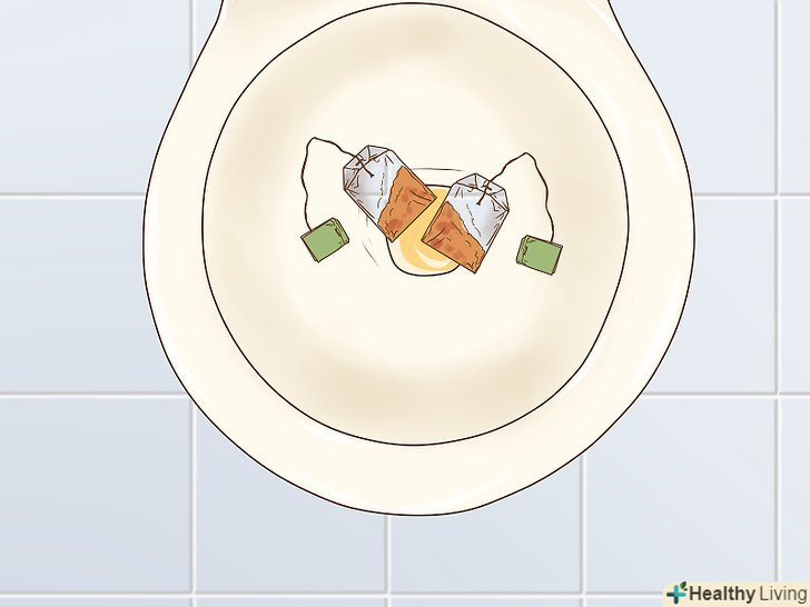 Почистіть унітаз. покладіть два або три використаних чайних пакетика в унітаз і залиште їх на кілька хвилин. Спустіть воду, а потім протріть фаянс унітазу, щоб видалити неприємні плями. Однак будьте обережні — якщо ви залишите чайні пакетики в унітазі надовго, швидше за все, це призведе до зворотного ефекту, і плями стануть ще більше і більш насиченим через Таннін, що міститься в чаї. Для цієї мети краще використовувати сорти більш світлого кольору. [6]