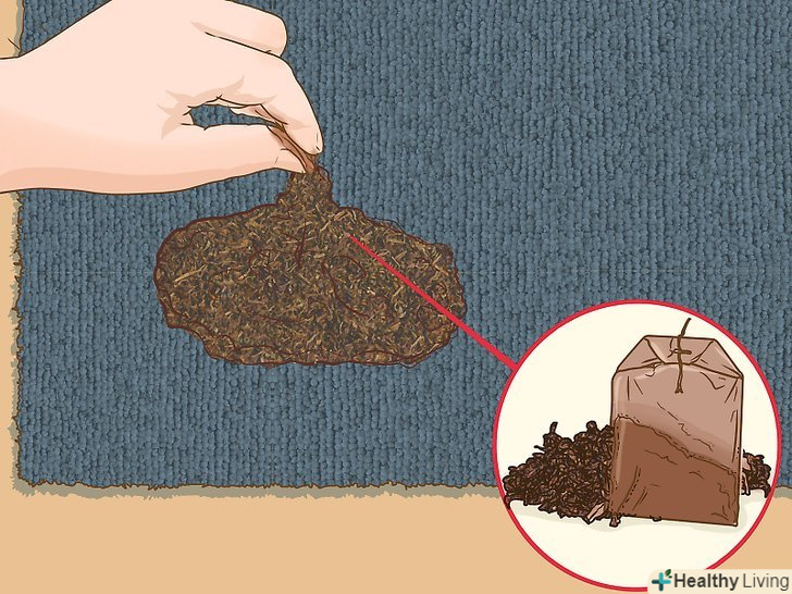 Почистіть килим або килимок. розкрийте використані чайні пакетики і почекайте, поки їх вміст майже повністю висохне. Потім посипте їм весь килим або килимок і дочекайтеся повного висихання. Пройдіться пилососом, і ви отримаєте не тільки чистий килим, але і приємний аромат в самому пилососі! [8]