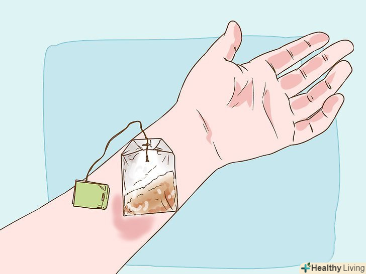 Лікуйте невеликі ранки. наприклад, якщо вас вкусив комар або ви отримали легкий сонячний опік, антиоксиданти зі старих чайних пакетиків допоможуть вам швидше відновитися. Епігаллокатехін-3-галлат, або ЕКГК, що міститься в чаї, також має протизапальні властивості. Поліфеноли зменшують почервоніння, а Таннін і теобромін притупляють біль. [9]- Прикладіть вологий використаний чайний пакетик до проблемної зони і залиште його до повного висихання, щоб отримати користь від вищевказаних властивостей.