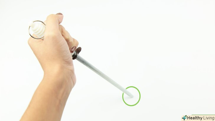 - Проведіть ножем по мусату. повільно, не докладаючи силу, проведіть лезом по мусату. За один рух ви повинні провести по мусату лезом від рукоятки до кінчика. [8]