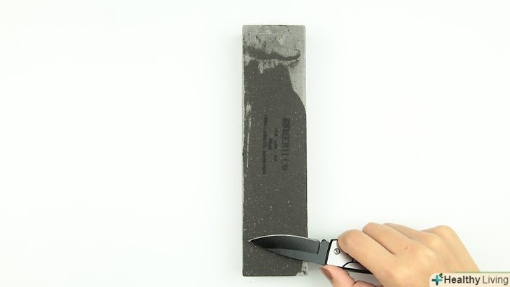 - Розгорніть брусок іншою стороною. потім проведіть ножем по ній. Це потрібно, щоб позбутися від усіх нерівностей і шорсткостей, які з'явилися на ріжучої кромці під час заточування. [5]