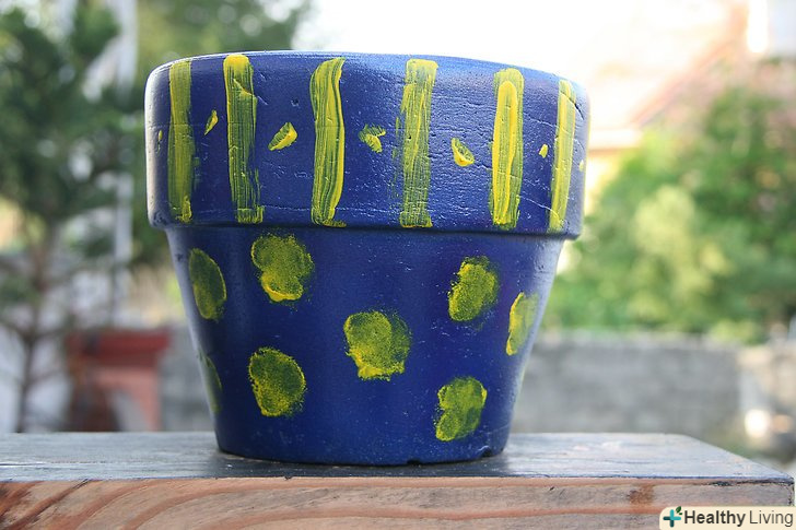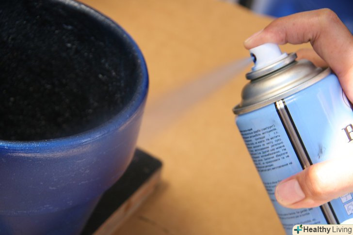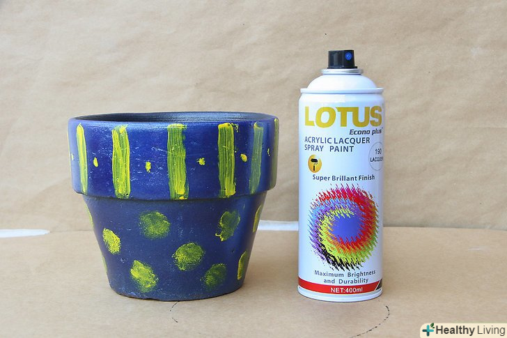 Закріпіть фарбу шаром безбарвної аерозольної емалі. це покриття захистить поверхню від подряпин, підвищить міцність і полегшить чистку горщика.