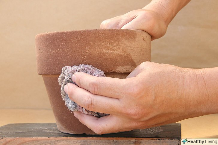 Протріть горщик вологою бавовняною матерією, щоб повністю прибрати пил і пісок. обсушити поверхню перед початком розпису.