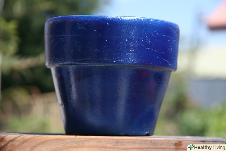 Фарбуйте горщик зовні. нанесіть тонкий шар аерозольної глянсової емалі для зовнішніх робіт. Зсередини пофарбуйте перші п'ять сантиметрів поверхні. Далі фарбувати немає потреби, так як горщик буде заповнений землею.