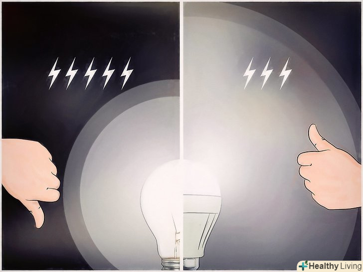 Замініть лампи розжарювання. ці старомодні лампочки спалюють більшу частину своєї енергії у вигляді тепла, а не виробляючи світло. Замініть їх компактними люмінесцентними або світлодіодними лампами, які набагато більш енергоефективні.- Компактні люмінесцентні лампи використовують приблизно на 3/4 менше енергії, ніж лампи розжарювання. У них міститься невелика кількість ртуті, тому утилізуйте їх правильно, коли вони перегорають.