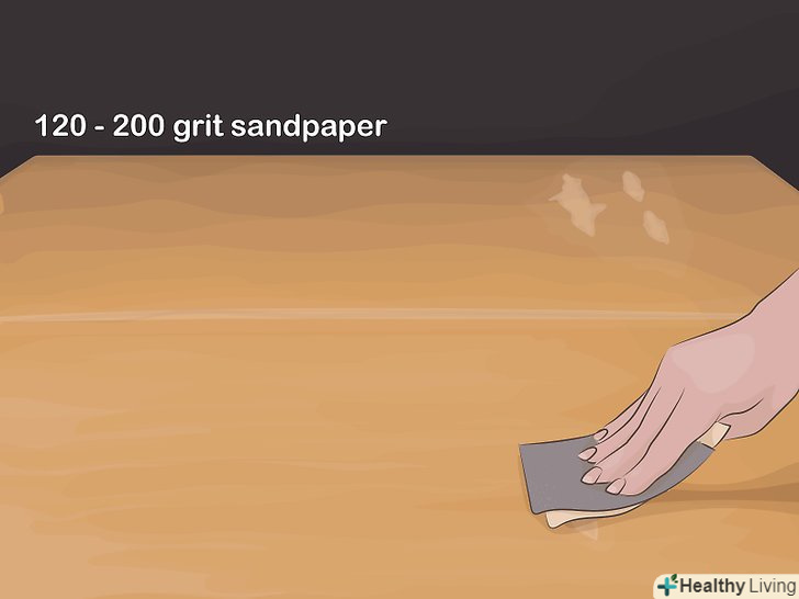 Ретельно відшліфуйте поверхню дрібнозернистоюНаждачним папером , щоб ще краще її вирівняти. маркування дрібнозернистого наждачного паперу варіюється в межах від P120 до P220 (10-H–6-H). [3] скористайтеся шліфувальною машиною, щоб полегшити собі роботу, або ж відшліфуйте поверхню вручну, особливо якщо на ній присутні важкодоступні місця або будь-які об'ємні деталі. Працюйте невеликими круговими рухами, поки поверхня дерев'яного предмета не стане рівною і гладкою. Шліфування також дозволить зробити поверхню трохи шорсткою, що полегшить подальше зчеплення фарби. [4]- Закрийте рот і ніс захисною маскою для обличчя, щоб не дихати пилом, яка буде летіти під час роботи.