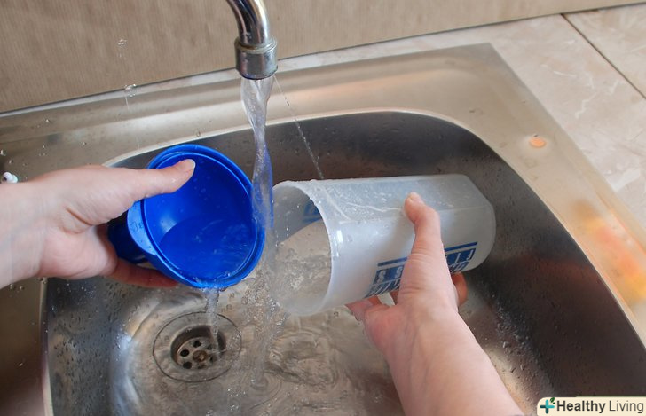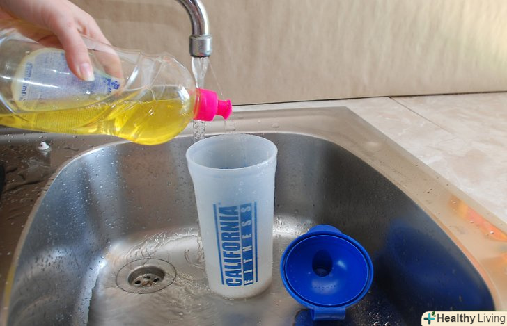Вилийте вміст і промийте пляшку. поставте її догори ногами в шафку для тарілок дайте висохнути, потім промийте її ще раз, перш ніж скласти на зберігання.