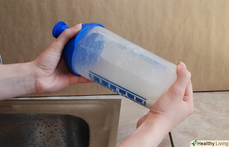 Добре промийте пляшку гарячою водою. якщо цвіль тверда або присохла, заповніть ємність гарячою водою, додайте трохи рідини для миття посуду і залиште приблизно на 20 хвилин.