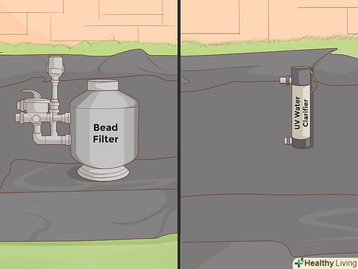 Встановіть гранульований фільтр і УФ освітлювач води.- Гранульований фільтр вловлює пісок і сміття, будучи домом для корисних бактерій, які так важливі для здоров'я мешканців ставка.