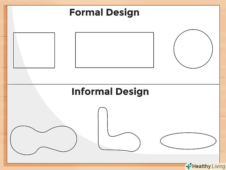 Стандартний або нестандартний ставок. стандартний ставок зазвичай має форму квадрата, прямокутника або правильного кола. Нестандартний ставок більше схожий на природний, він повторює природні лінії і не має певної форми. Будь-яка обрана форма повинна, перш за все, забезпечувати хорошу циркуляцію води. Округлені краї набагато краще підходять для водного потоку, ніж кути. Для забезпечення максимальної циркуляції води донний злив повинен бути максимально віддалений від повернення води.