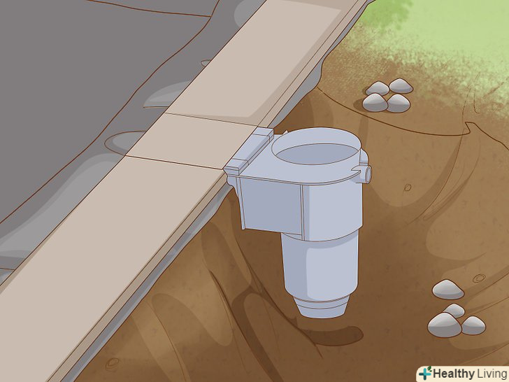 Встановіть донний слив. Якщо у вашому ставку будуть жити риби, то донний слив повинен мати пробку із захистом від завихрення води, інакше рибу буде засмоктувати в решітку.