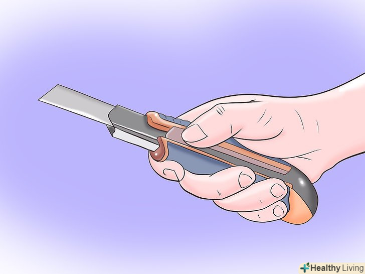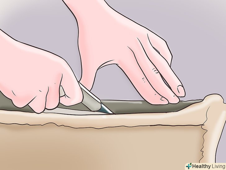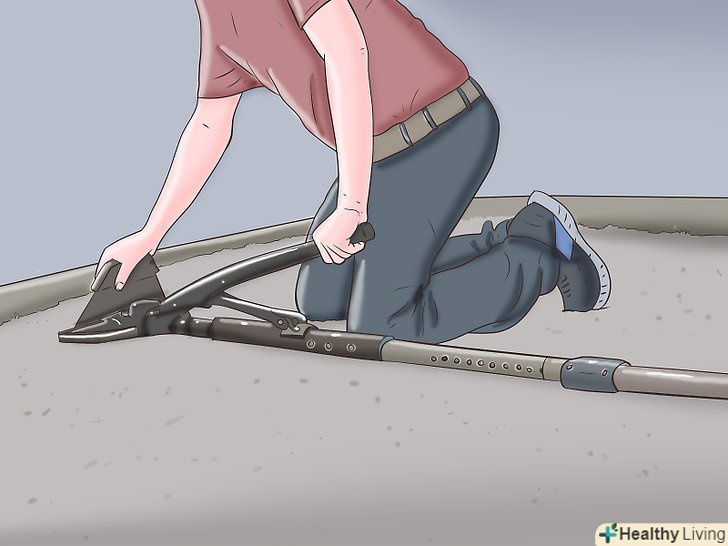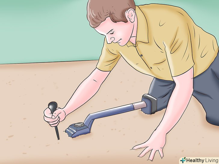 Видаліть старі смуги прикріплення зі зворотного боку килима за допомогою викрутки або іншого гострого предмета. при роботі з інструментами надягайте робочі рукавички, щоб не поранити руки гострими предметами.- Складіть старі смуги прикріплення в коробку або викиньте відразу у відро для сміття. Робоче місце має бути чистим, намагайтеся прибирати відразу ж після використання всі гострі предмети, щоб випадково не поранитися.
