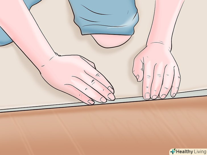 Обріжте підкладку різаком уздовж смуги прикріплення, відступаючи від неї приблизно на 2,5 см.- В кутах кімнати і навколо дверних прорізів потрібно різати по діагоналі, щоб все збіглося.