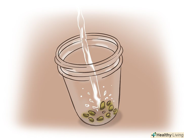 Наповніть банку теплою водою. поставте банку вертикально і залиште насіння вбирати воду.- Також можна додати 1 чайну ложку (5 мл) лимонної кислоти на літр води для замочування. Це робити необов'язково, але так ви збільшите відсоток схожості.