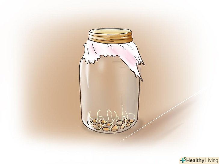 Продовжуйте Полоскати насіння щонайменше двічі на день.- Завжди тримайте банку вниз шийкою, під кутом. Це дозволить виходити надлишковій волозі, і циркулювати повітрю, що в свою чергу, захистить насіння і паростки від псування.