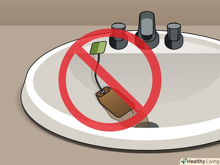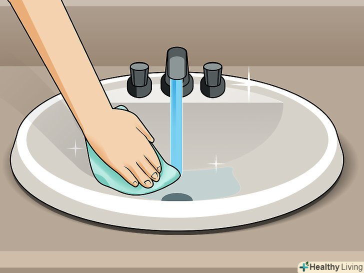 Не залишайте в раковині нічого, що може привести до появи плям, на ніч. кавова гуща, чайні пакетики, вино та інші темні або фарбувальні речовини можуть сприяти появі стійких і трудновиводімих плям. Запобігайте появі плям, прибираючи речовини, які можуть залишити стійкий слід. Після цього ретельно мийте раковину. [11]
