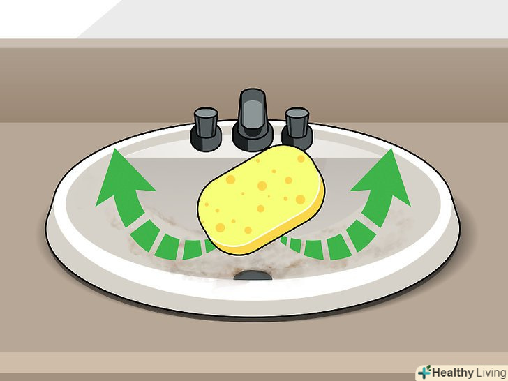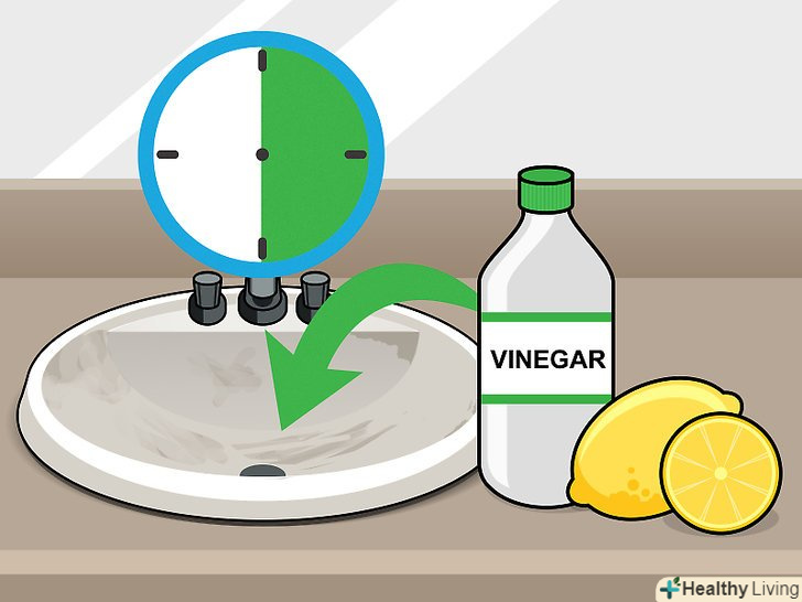 Зачекайте деякий час, залишивши засіб на забрудненій ділянці. хоча лимонний сік і оцет є досить м'якими засобами, не залишайте їх надовго на забрудненій ділянці, інакше ви можете пошкодити поверхню раковини. Згодом у вас можуть виникнути проблеми з її очищенням. [2]- Потріть забруднену ділянку м'якою губкою або тканинною серветкою через півгодини після нанесення засобу і оцініть результат.