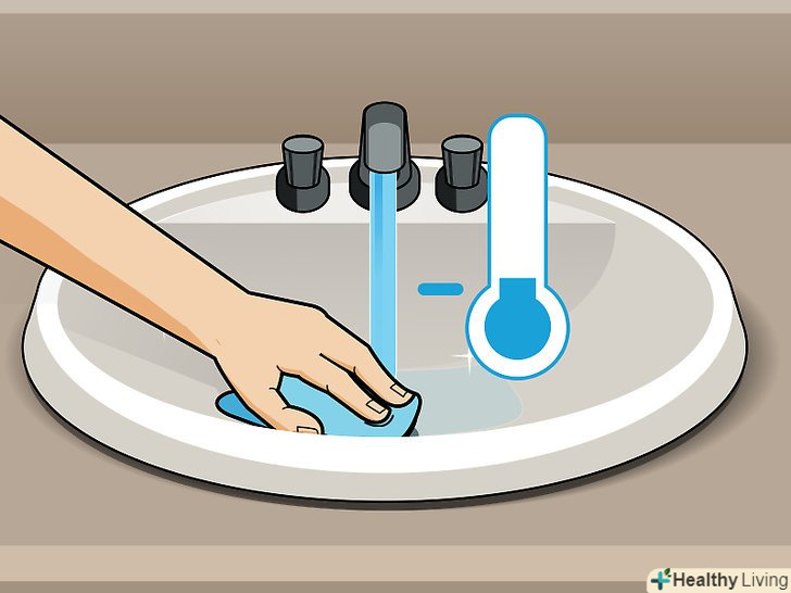 Мийте раковину водою з миючим засобом регулярно. перш за все регулярне чищення дозволить запобігти появі бруду на поверхні. Акуратно промивайте раковину після кожного користування. Використовуйте миючий засіб для посуду та м'яку неабразивну губку. Мийте раковину ретельно. [9]