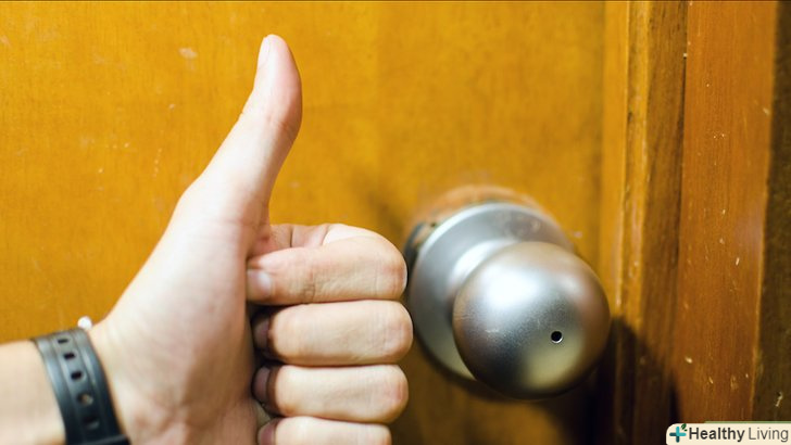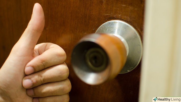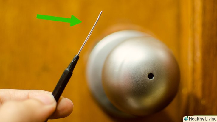 Визначте тип замка, з яким ви маєте справу. у більшості дверних ручок, також відомих як ручки "для спалень і туалетів", для замикання всередині встановлена кнопка або крутиться механізм. Зовні дверна ручка має маленький круглий отвір в центрі, призначений для екстреного доступу. [1]- Якщо можете, з'ясуйте, з яким видом замикаючого механізму ви маєте справу (кнопка або крутиться).