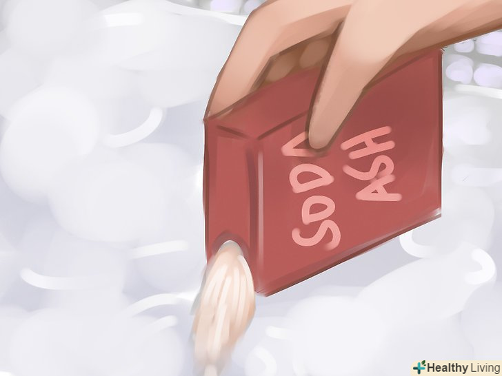 - Сипте карбонат натрію повільно, щоб не розплескати воду.