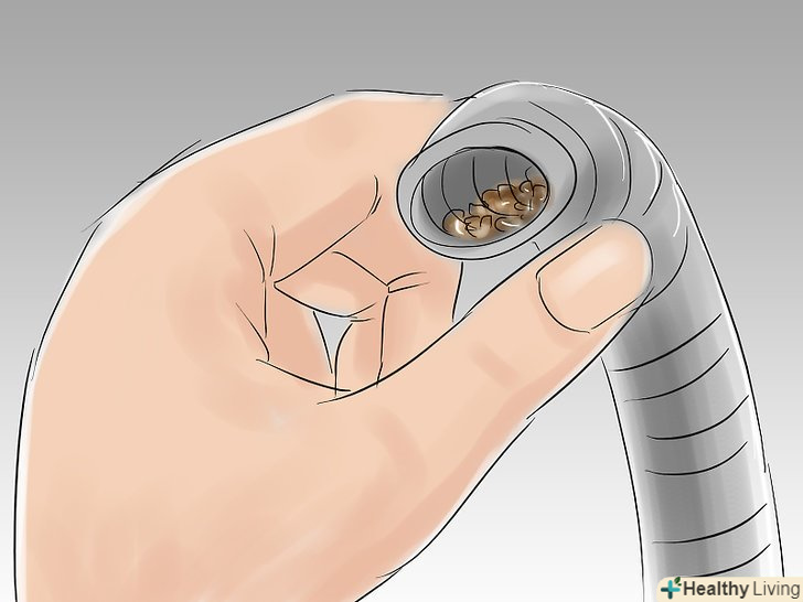 - Очистіть шланг від сміття, пропустивши через нього довгу гнучку щітку.