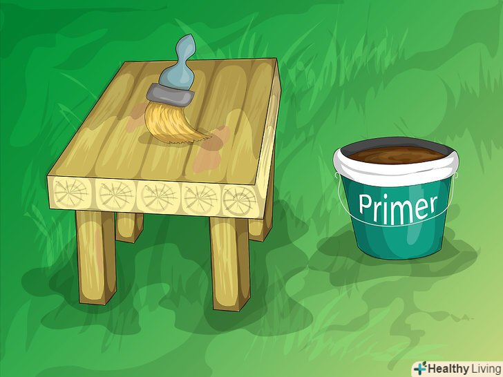 Нанесіть грунтовку. це важливий крок перед фарбуванням, тому, що після нього поверхня буде обробленою, і буде гарантувати, що фарба прилипне до сосни. Наносите грунтовку пензлем в напрямку деревних волокон. Вона може виглядати плямами на дереві, навіть при застосуванні довгих мазків. Вона не виходить рівномірно, і вона не повинна виглядати ідеально на даному етапі. Залиште грунтовку для висихання на ніч.