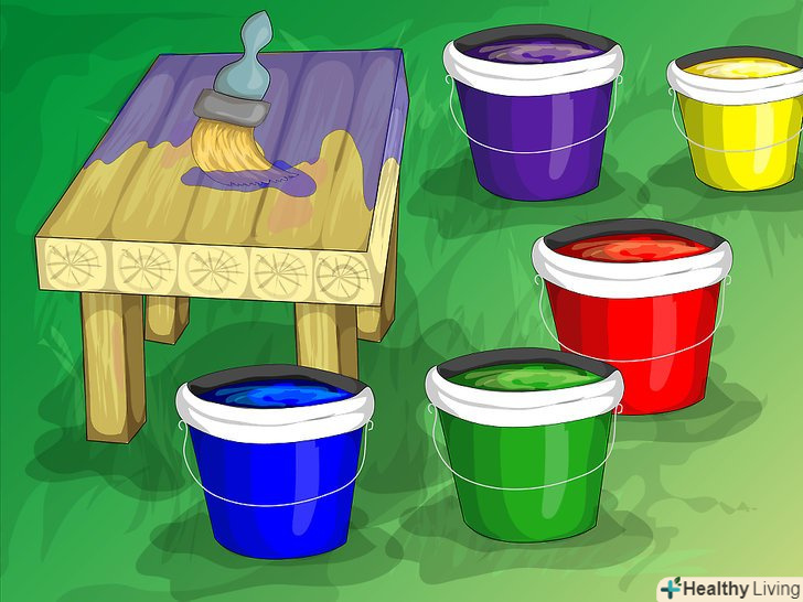 Виберіть колір фарби для сосни. використовуйте пензлик для нанесення фарби поверх грунтовки. За допомогою 2-дюймової кисті забезпечте рівномірний результат. Середнього розміру кисті будуть покривати меблі з великими мазками фарби, забезпечуючи при цьому увагу до деталей навколо невеликих частин сосни. Фарбуйте у напрямку волокон деревини з плавними, рівними рухами. Залиште перший шар сушитися на ніч.