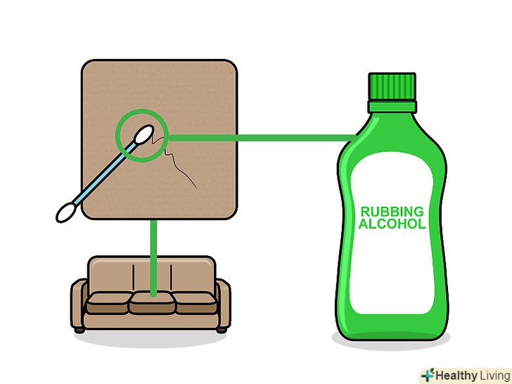 Спробуйте використовувати ізопропіловий спирт. 70% ізопропіловий спирт використовувався деякими власниками шкіряних виробів в минулому, хоча це, ймовірно, не є кращим методом. [3] змочіть ватяну паличку або ватний тампон в невеликій кількості спирту і потріть ділянку шкіри з плямою. Оскільки алкоголь сушить шкіру, використовуйте очищувач для шкіри та кондиціонер, щоб уникнути цього ефекту. При необхідності повторіть.