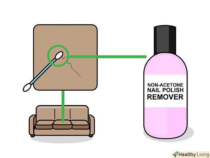 Використовуйте рідину для зняття лаку без ацетону. деякі люди досягли успіху у видаленні плям за допомогою рідини для зняття лаку на безацетоновій основі. [5] змочіть ватяну паличку, потріть пляму, і нанесіть трохи засобу для чищення шкіри і кондиціонера, щоб запобігти зайве висихання шкіри.