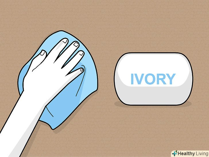 Спробуйте протерти шкіру м'якою тканиною, змоченою в мильній воді. засоби на основі мила м'якше засобів на основі знежирюючих розчинників, що робить їх більш придатними для чищення плям з шкіри.- Як відрізнити миючі засоби на основі розчинника від засобів на основі мила? На упаковці має бути чітко написано: "розчиняє жир" або "на основі розчинників жиру", якщо це дійсно так, то будьте обережні.