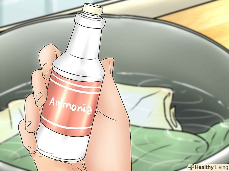 Аміак. аміак має сильний токсичний запах, який шкідливий для легенів. Переконайтеся, що приміщення для прання добре провітрюється. Помістіть речі в машинку і включіть її, не додаючи порошку. Додайте одну склянку аміаку. Після завершення циклу включіть ще один цикл, тепер вже з порошком. Після закінчення повісьте одяг на сонці. [2]- Ніколи не змішуйте відбілювач з аміаком. Таке співвідношення надзвичайно шкідливо для здоров'я.