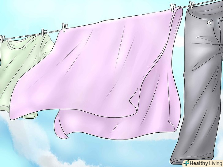 Повісьте одяг сушитися на сонці, щоб позбутися від спор цвілі і неприємного запаху. навіть взимку можна повісити одяг на вулицю в сонячний день. Постарайтеся розвісити одяг під сонцем, на вітрі.- Якщо на вулиці дощ, можете включити сушарку. Це не найкраще рішення, оскільки сушарка являє собою обмежений простір, в якому одяг не зможе провітритися.
