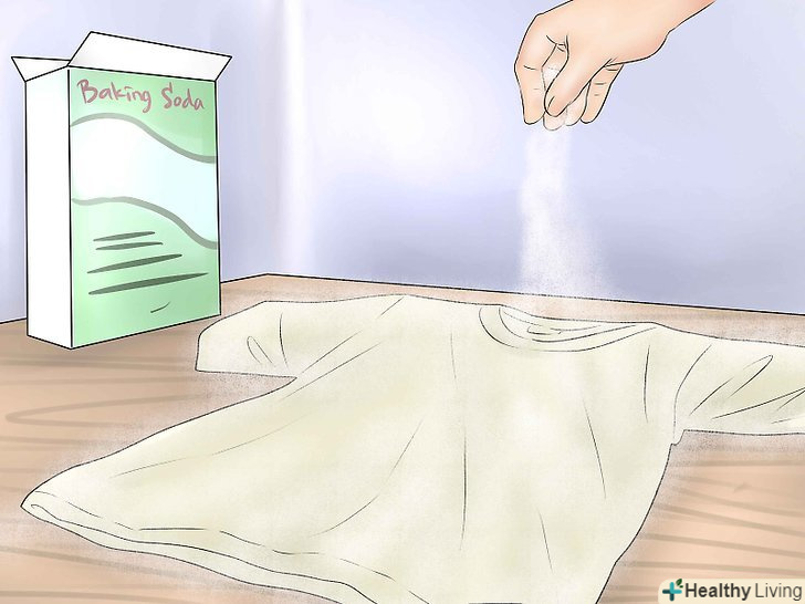 Використовуйте харчову соду. замість того щоб прати за допомогою соди, використовуйте порошок для сухого чищення. Сода допоможе вивести неприємний запах. Для кращого результату знадобиться повторити процедуру кілька разів.- Покладіть виріб на чисту поверхню. Посипте всю поверхню содою. Переверніть і повторіть процедуру з іншого боку. Якщо ви не хочете наносити соду безпосередньо на поверхню виробу, помістіть його в пластиковий пакет поруч з відкритим контейнером з содою.