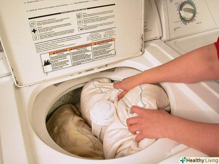 Завантажте в пральну машину як мінімум дві пір'яні подушки, щоб вага розподілявся рівномірно.